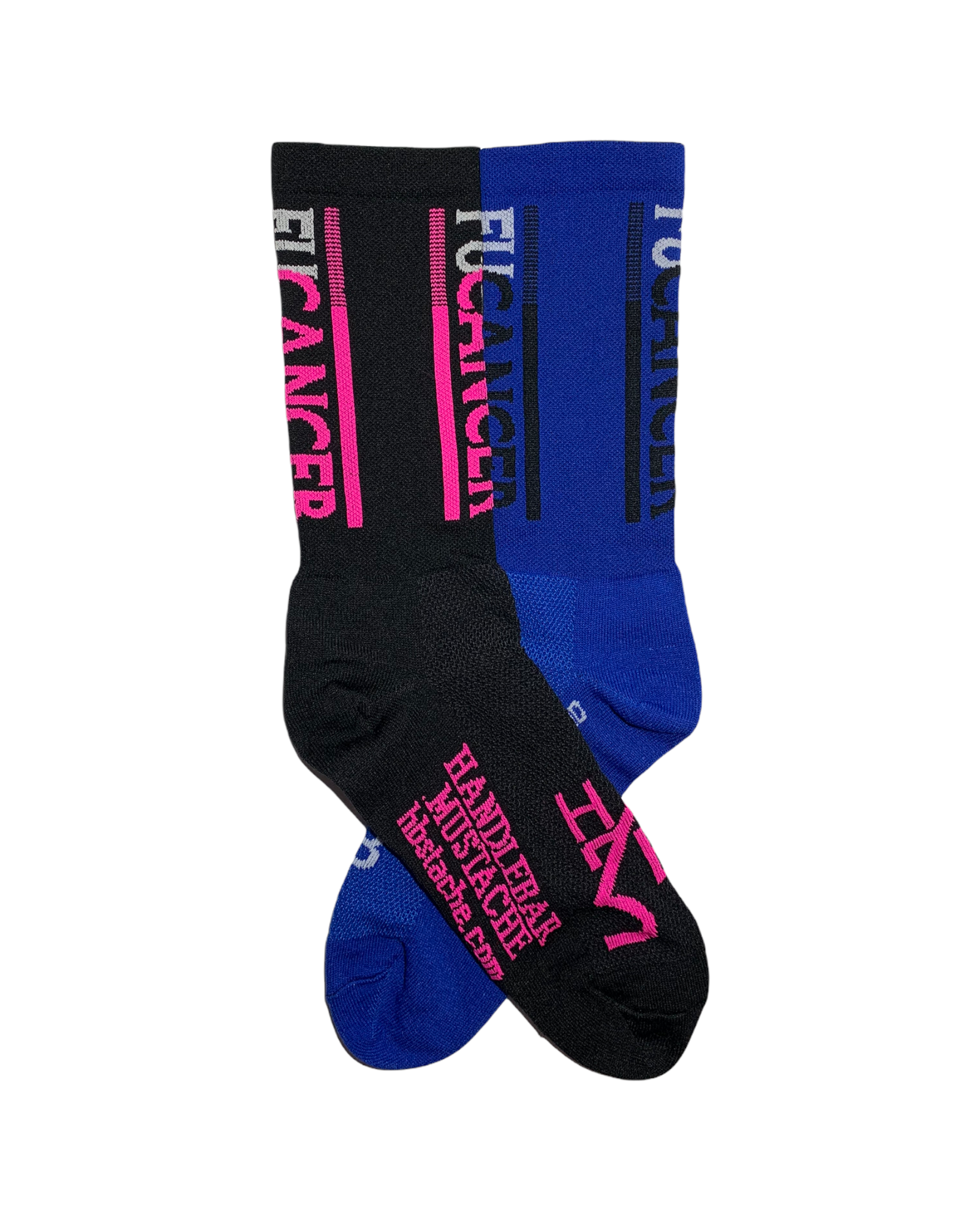 These are Black socks with Pink and White details or Royal Blue with White and Black details.